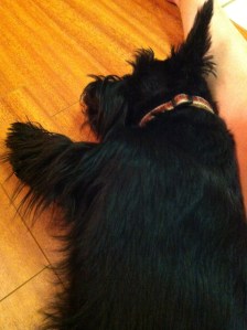 Now I’m all packed, ready to wake up at the rump-crack of dawn… oh wait, that’s right, wake up BEFORE that, to get another short run in, and then hit the road!  I’m sure Patrick is excited too, he gets to go to doggie daycamp all day tomorrow.  Right now he’s resting up for his big day 🙂