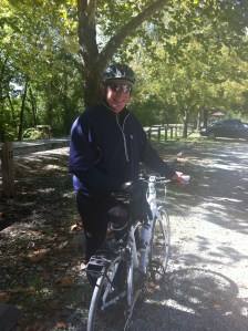 I was pretty hungry by the time we got there and had a couple of beers along with my sandwich for ‘added carbs’ 🙂 After an hour, my mom left to head back home and the five of us (my neighbor’s wife and daughter road their bikes from the car to the restaurant) started to head back to the cars, which was about 18 miles away. I was tired and so was my rump, but the food and break (and beers? ;))gave me some new-found energy so I knew we would finish the last 18 miles strong. I think my dad felt the same way after resting and getting some fuel because he had really picked up the pace from what we were riding at the end of the first 45.
