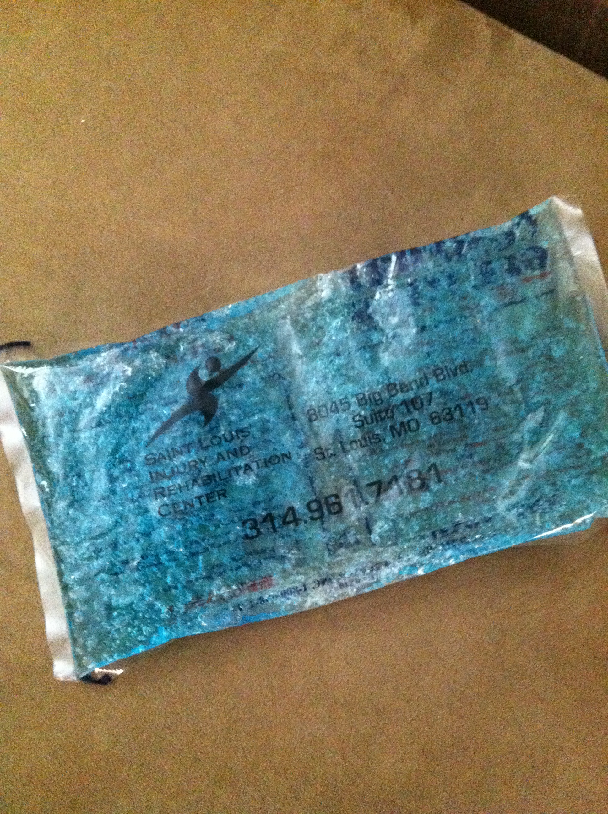 The ice pack that is going to nurse my hamstring back to health (leftover from PT several years ago)
