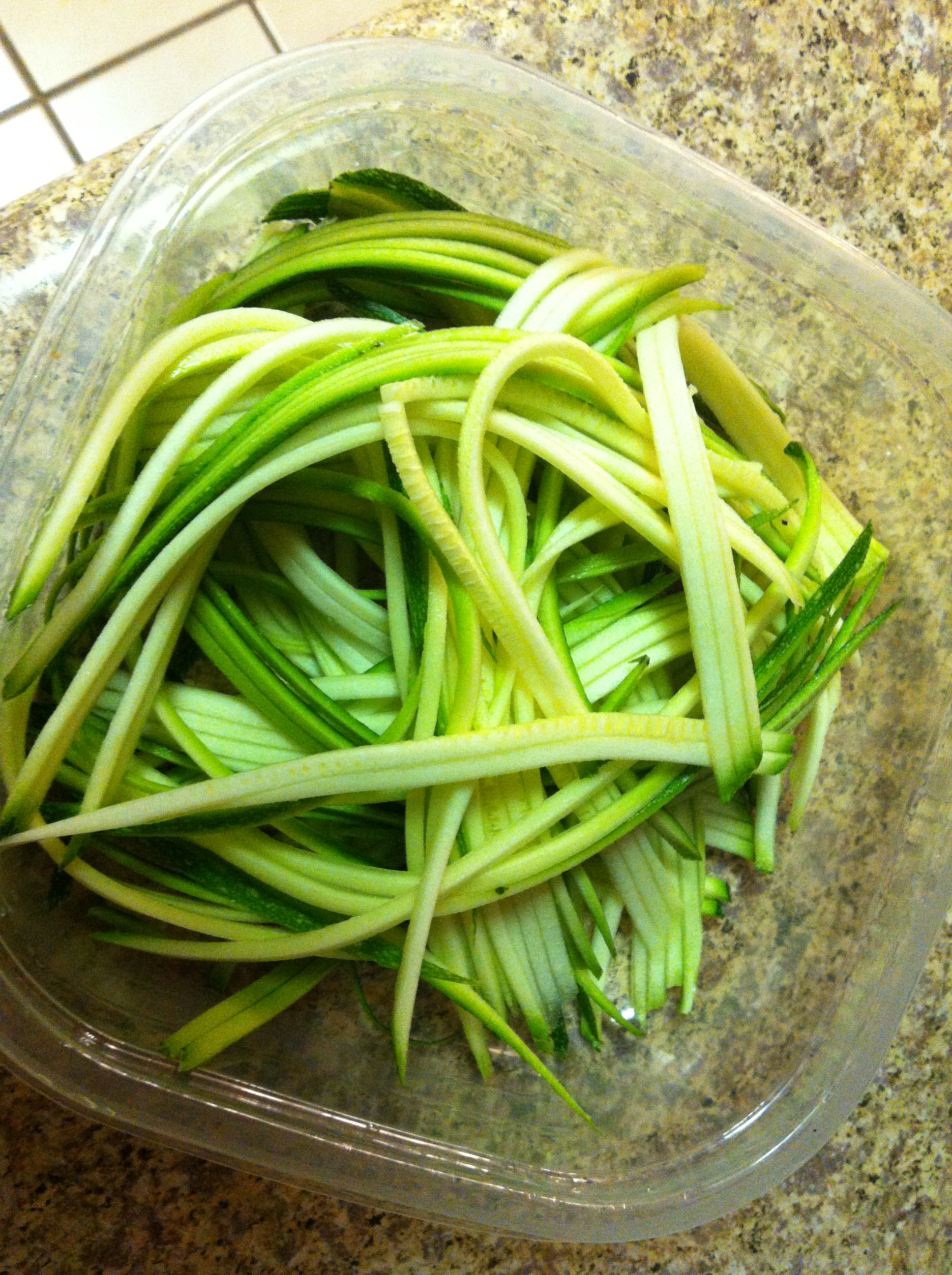 After the run, I still managed to have a somewhat productive day… laundry, cleaning and cleaned out my fridge (it was a long overdue task… pretty yucky). I also ‘cooked’ dinner… well, if you count spaghetti as cooking, which I do because I added ground beef to the sauce and I also made my own ‘spaghetti’ noodles with zucchini. Pretty sophisticated 🙂 JMR prefers regular old noodles, no fun.