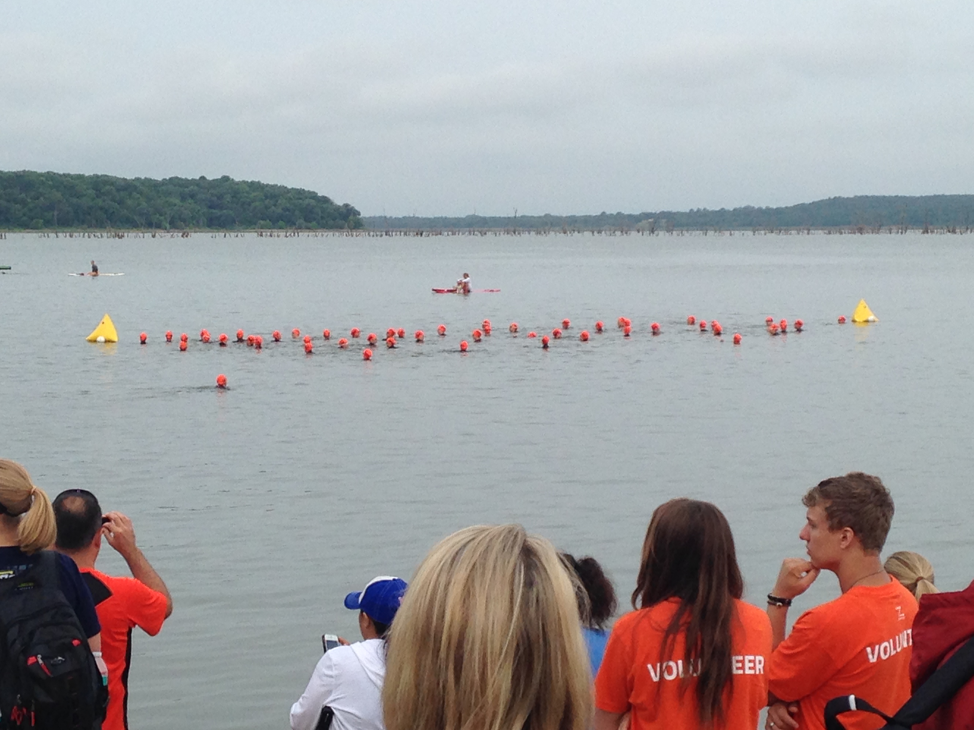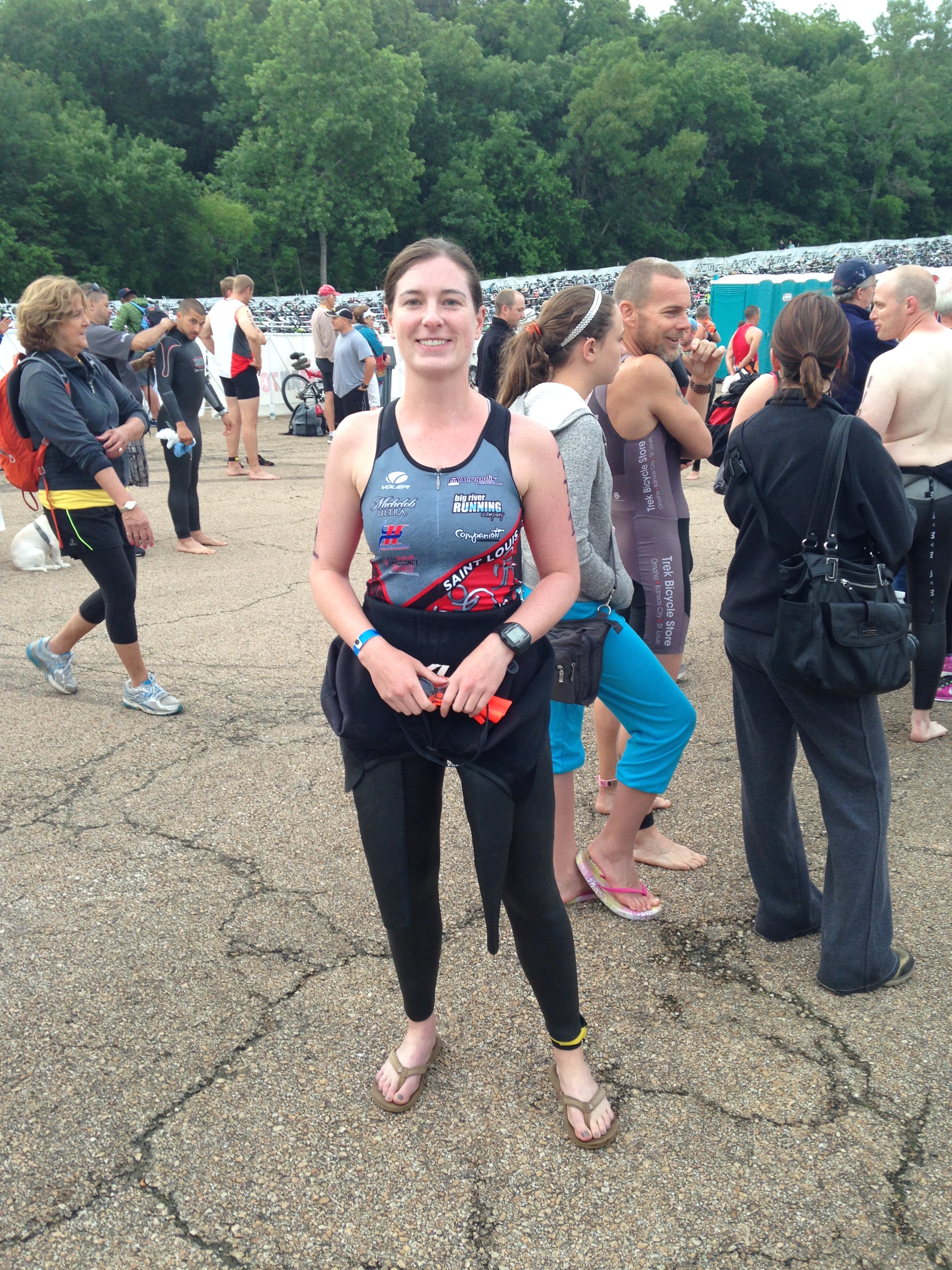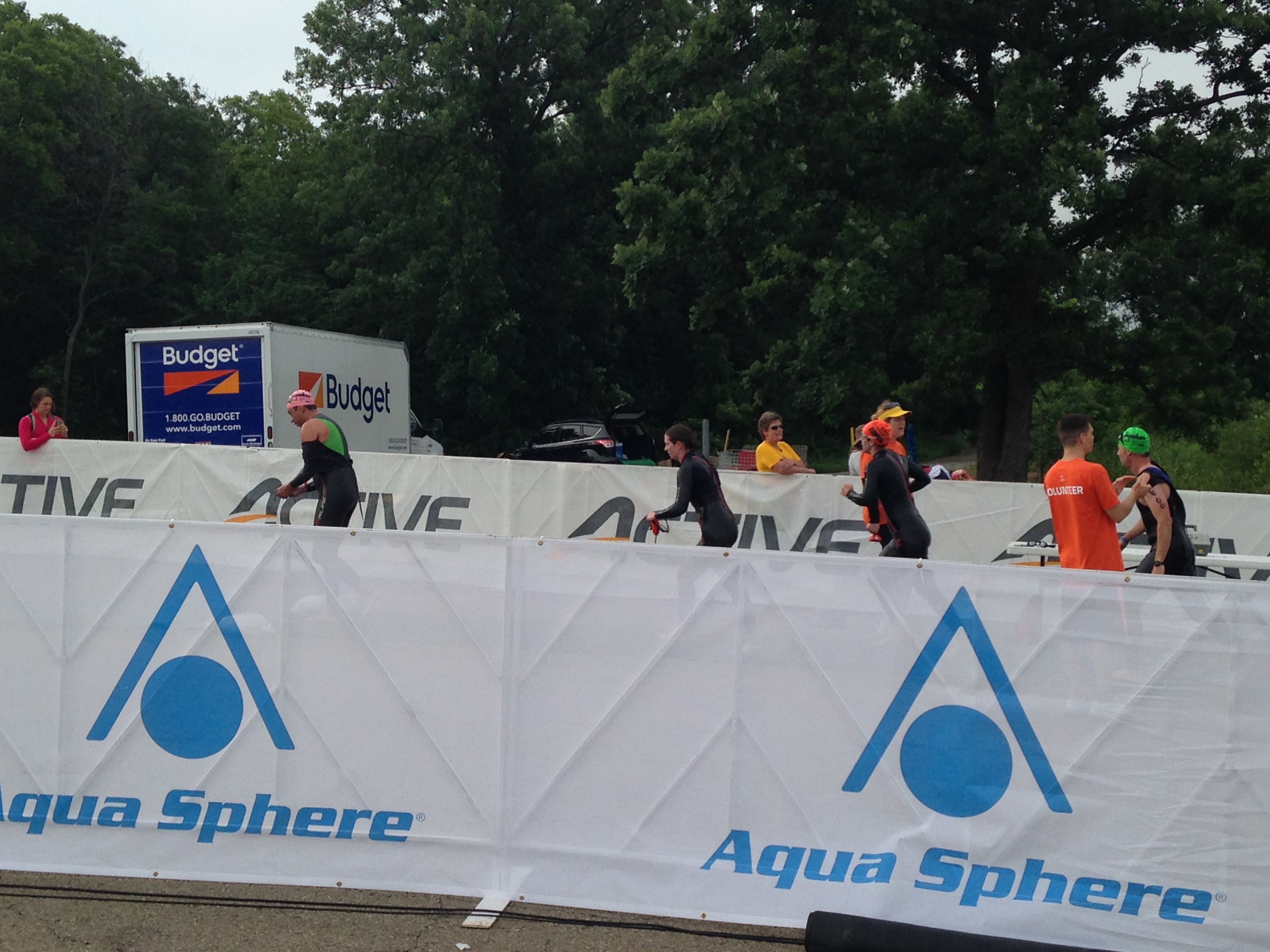 On to the swim! After JMR and I hung out for a while, plus an additional 15 minutes (they pushed all waves back 15 minutes, I guess because traffic was so bad getting into the park), then I finally lined up with my wave around 7ish (the first wave went off at 6:30). I chatted nervously with my tri club buddy until we waded into the water and let me tell you… I was nervous. The last time I did this distance I was so innocent about the day’s events and didn’t know what could lie ahead of me. I know that sounds negative, but that’s kind of how I approached the day. Grateful and Cautious. Two of the words that kept coming into my thoughts throughout the day. Also ‘treat this as a training day’ was constantly in my head to keep the stress at bay. The goal was to finish.