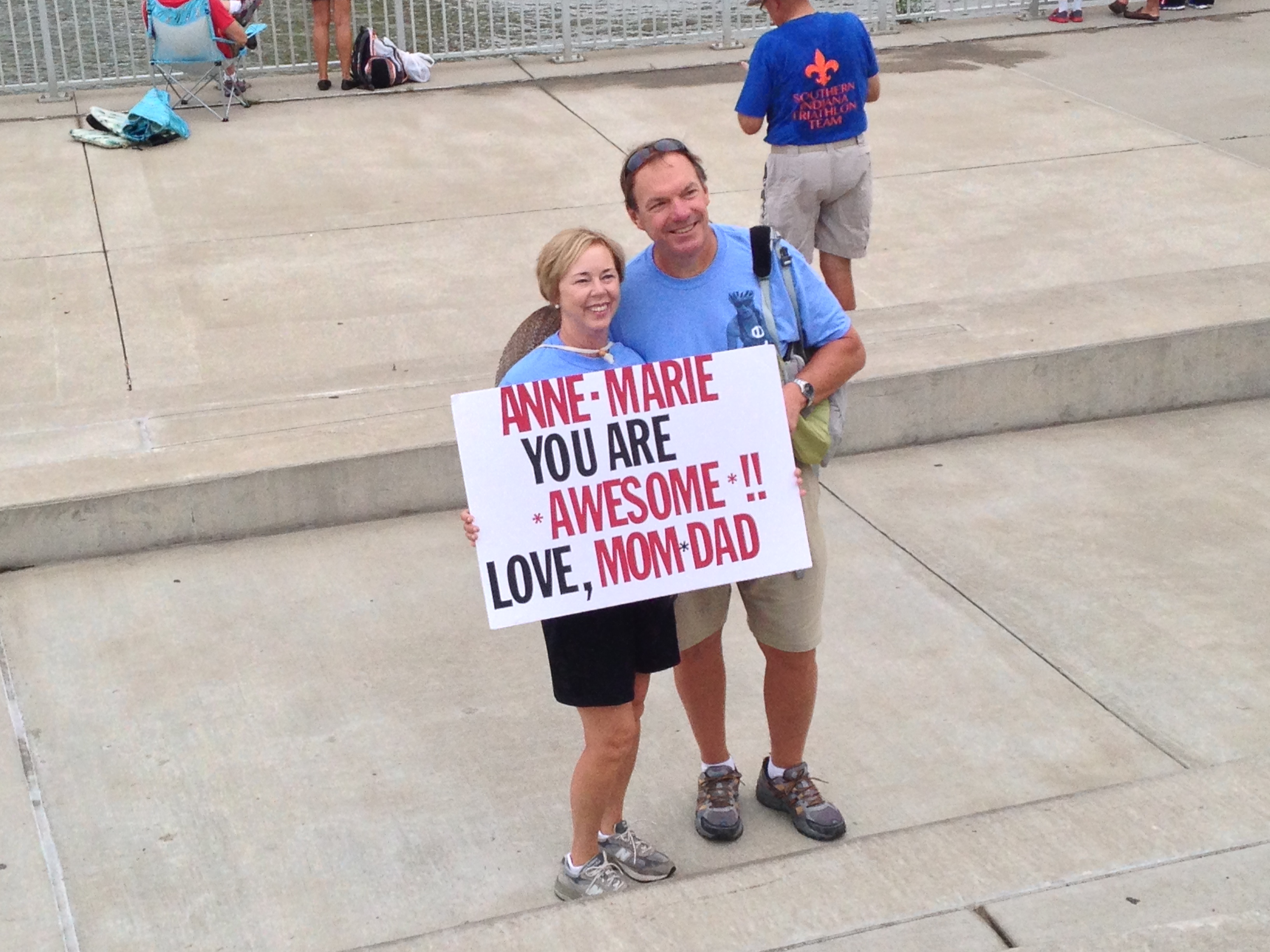 I gave JMR a kiss, put my goggles on, and walked down to the dock. Once I got to the dock I could hear people shouting my name and it was my mom, aunts and cousin!! It was AWESOME to see them! And also gave me a burst of energy. Before I knew it, I was jumping in!