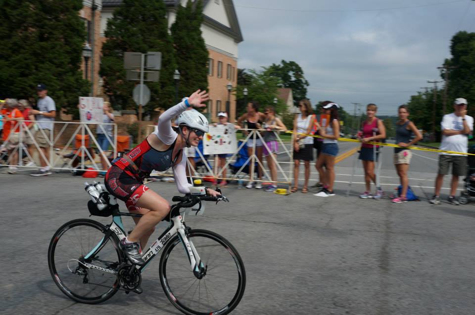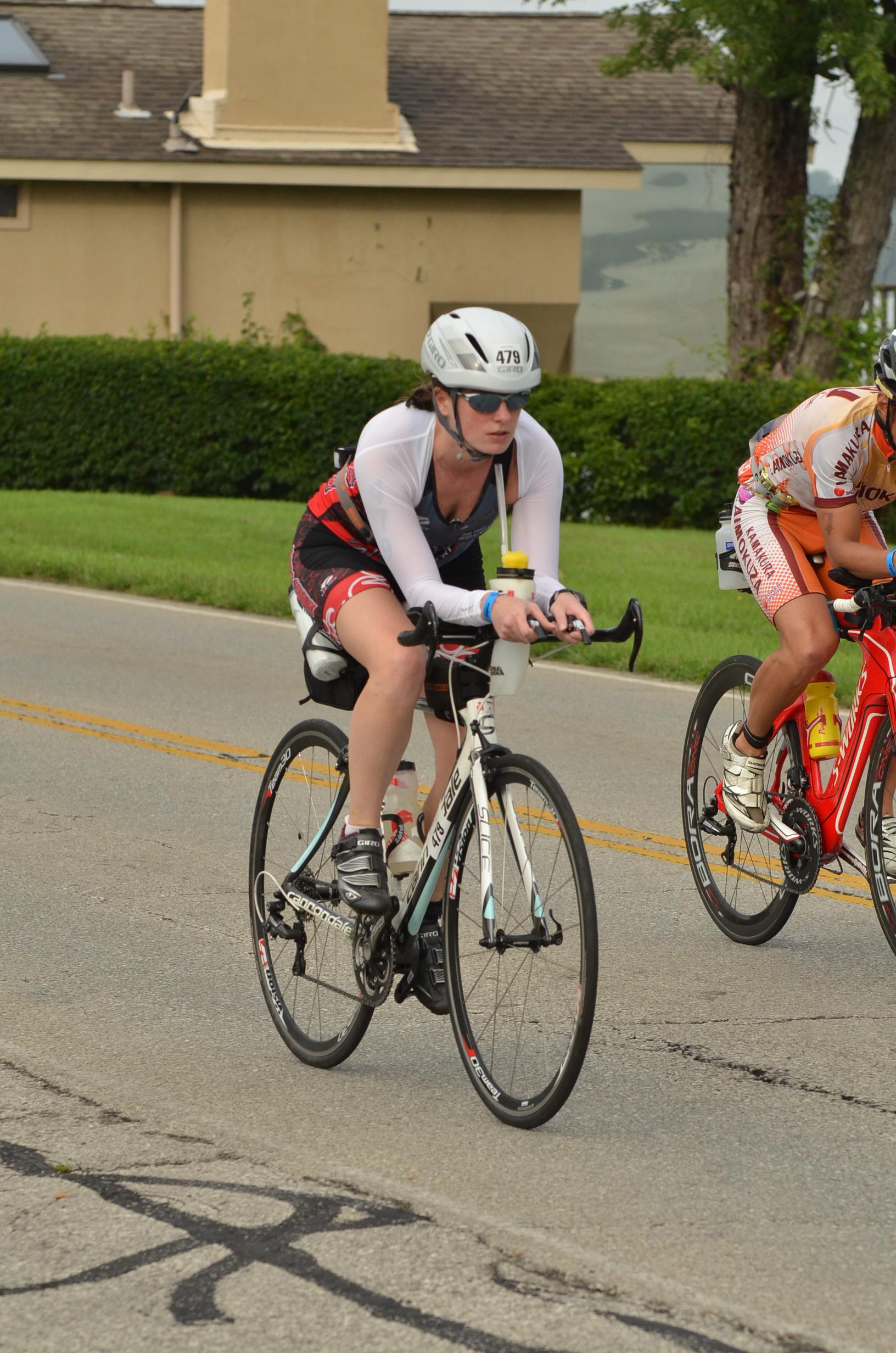 I was in a great mood. The next 20 miles I felt good, lots of happy chit chat with other athletes, focusing on nutrition, and soon I was making the turn for the second loop. This time on this loop I stopped at the aid station near LaGrange (the first time I rode through and just grabbed water while riding) to use the porta potty and mix my second bottle of infinite. It only took about five minutes, but because my family could see that I was stopped for a period of time, they started to get nervous (per JMR after the race). Then I was back on my bike, doing my thing, and passed through LaGrange again, feeling like a rockstar, but not as much as the first time, as the crowd had really thinned out. Seeing my family gave me another boost and as I was heading out, I thought ‘This is easy!’