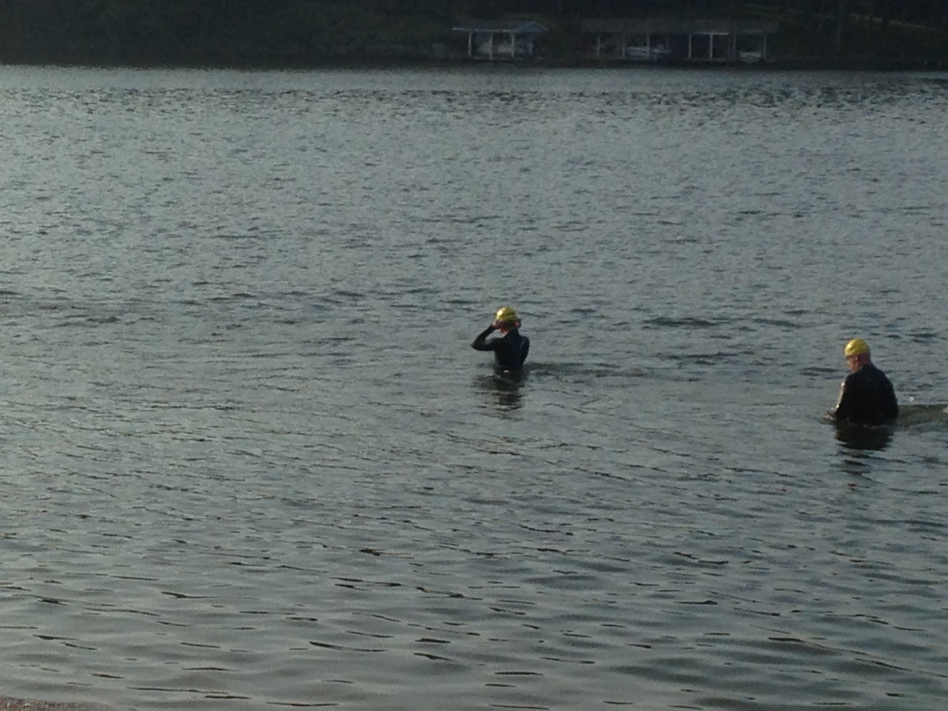 Soon I got into a groove and was breathing to my right (clockwise course, so no need to breathe bilaterally) every three strokes. Before I knew it, I was almost done with the first loop. I waded near the shore where the enter/exit point was, called out my number (they didn’t have timing mats) and was back in the water again. I checked my watch before heading out and saw it was around 18:40ish…woo-hoo! If I keep the same pace I could PR!