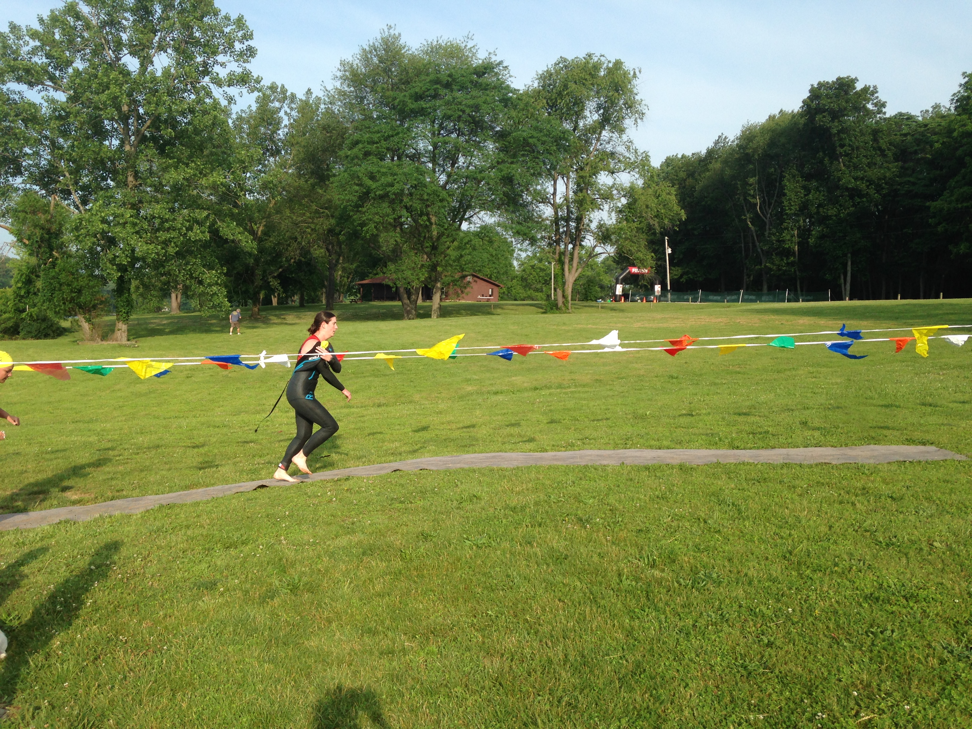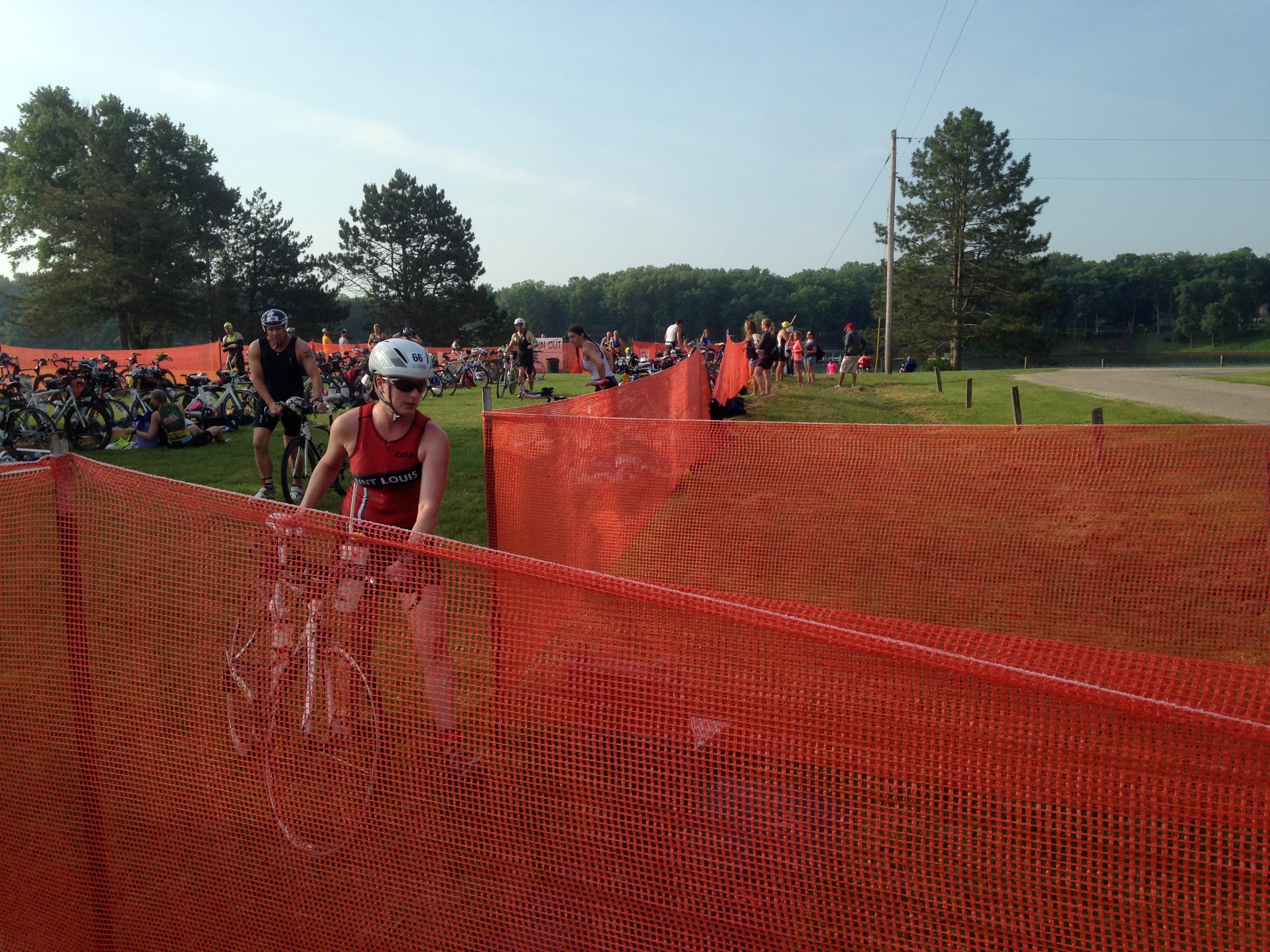 The second loop was uneventful, just the battle with the seaweed/seaplants during the swim near the shore (I definitely yelped a few times under water when I really felt it tugging on my limbs), and soon I was out of the water and running up to transition. I checked the clock and it read 38:xx, yay! I will take a one minute PR π Once I got into transition I quickly pulled off my wetsuit, put my socks, bike shoes, glasses and helmet on and I was off! Speedy transition for me (at KS I think I walked to my bike row, went to the wrong row, walked around…well in short, it was slooow). Swim time: 38:51.03T1: 1:59.52