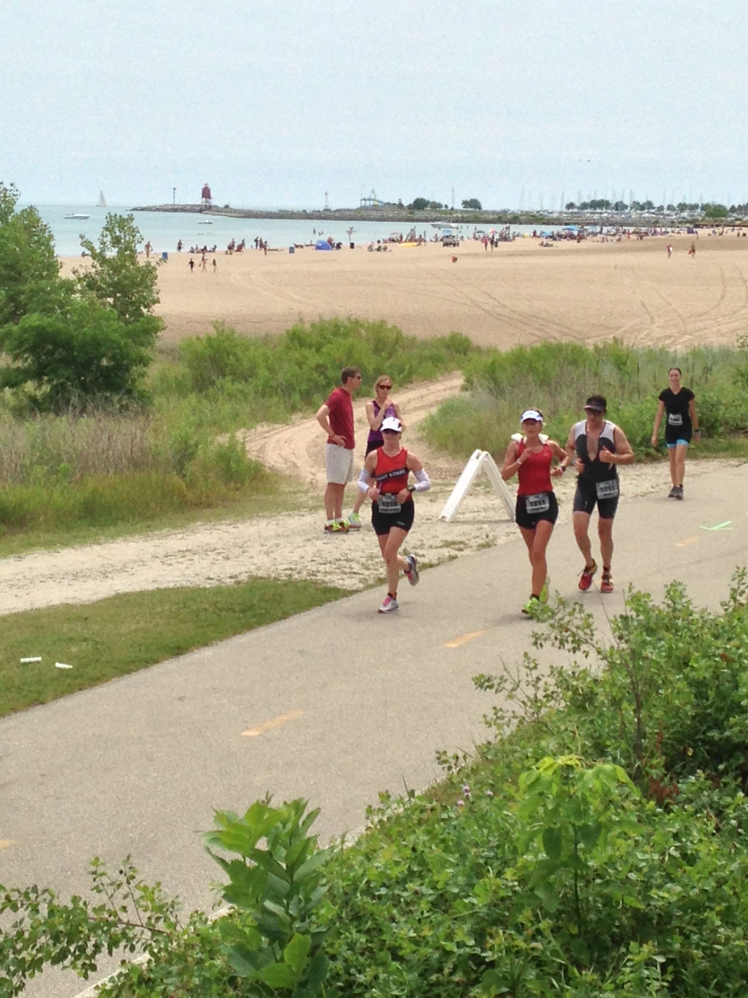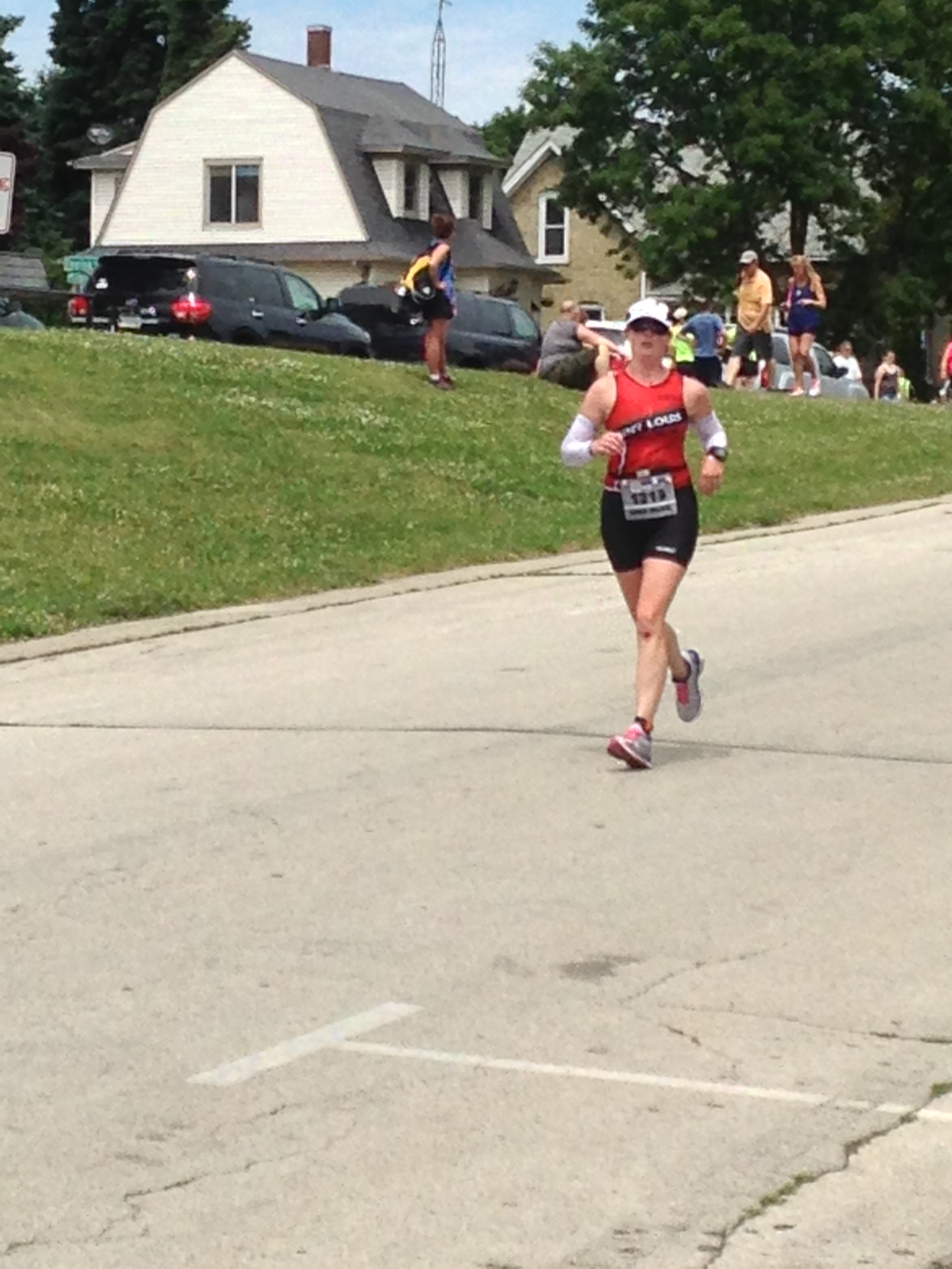 I don’t know what the deal was, maybe I did overbike, but my legs didn’t feel terrible, I just felt tired and was ready to be done. Usually the run is ‘my thing’ and where I get the most energy, like at Kanasas 70.3…I felt like my legs were on fire, in a good way, but today? My legs were in the mood to walk. I decided it was time to start drinking coke, so at the next aid station I took a water, gatorade and a coke, did a little walking and soon I felt like my peppy energy and legs had decided to show up. I started to run and my next mile I managed around a 10 minute mile. Not great, but, better than walking. The next 6 miles were kind of a blur. More coke, some walking, some running….I think my pace was around a 10/10:30 min average. I just couldn’t figure out why this run had become such a struggle, there was shade on the course, it really wasn’t very hot (mid 80’s?) and for crying out loud, I remembered my darn salt tabs on the bike and run!