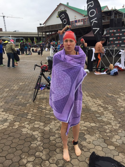 I was also going to wear wool socks, toe covers on my bike shoes and toe warmers. I planned on packing an extra set of toe warmers in bike special needs just to be extra safe as well. Ok, I was set. The rest of the weekend flew by and was pretty uneventful other than experiencing waves of anxiety about race day temps. On Saturday I did the practice swim and the current was very strong, which I was happy about since that would mean a fast swim. What I didn’t realize that too fast might have been a bad thing.