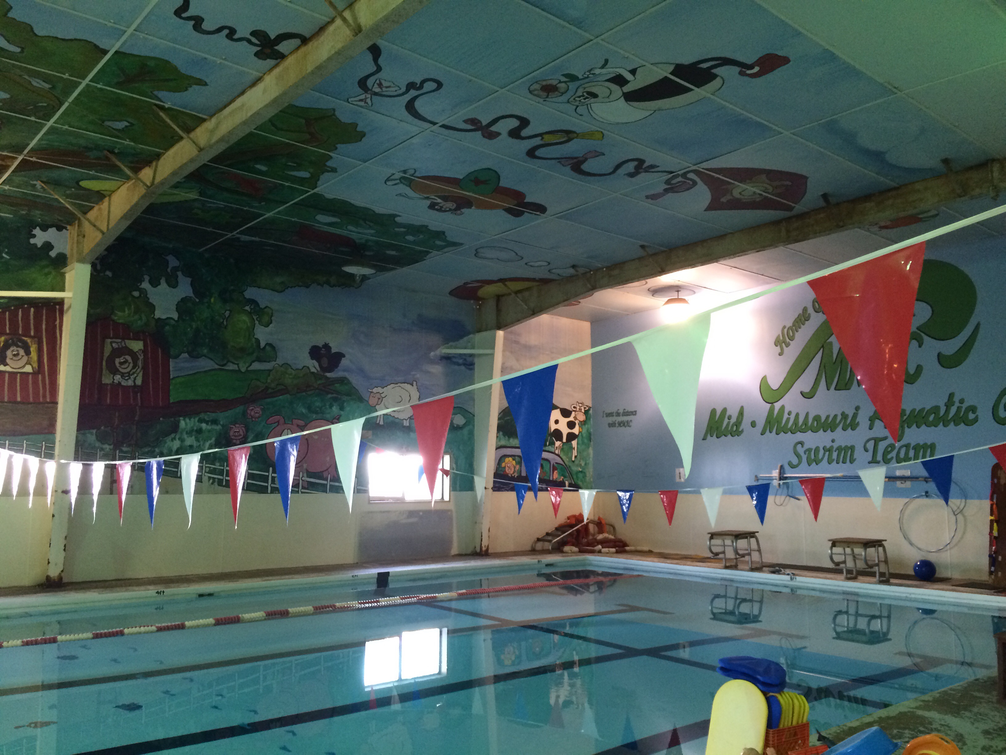 The pool, walls and ceiling were painted with cute animal figures and scenes, and it made for a very amusing swim.