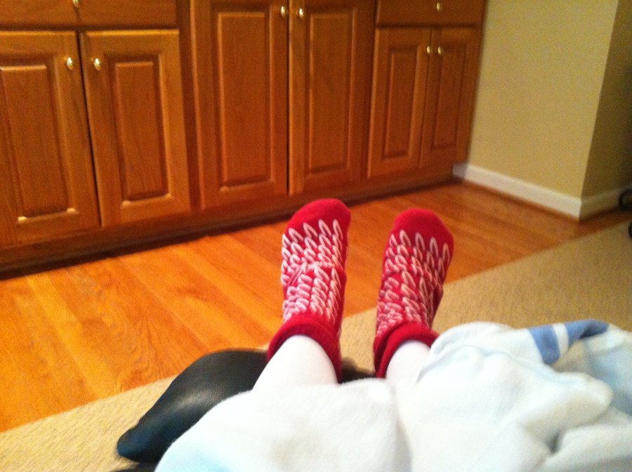 My view for the first four days after surgery. Note the special ‘non slip’ socks my mom wanted me to wear.